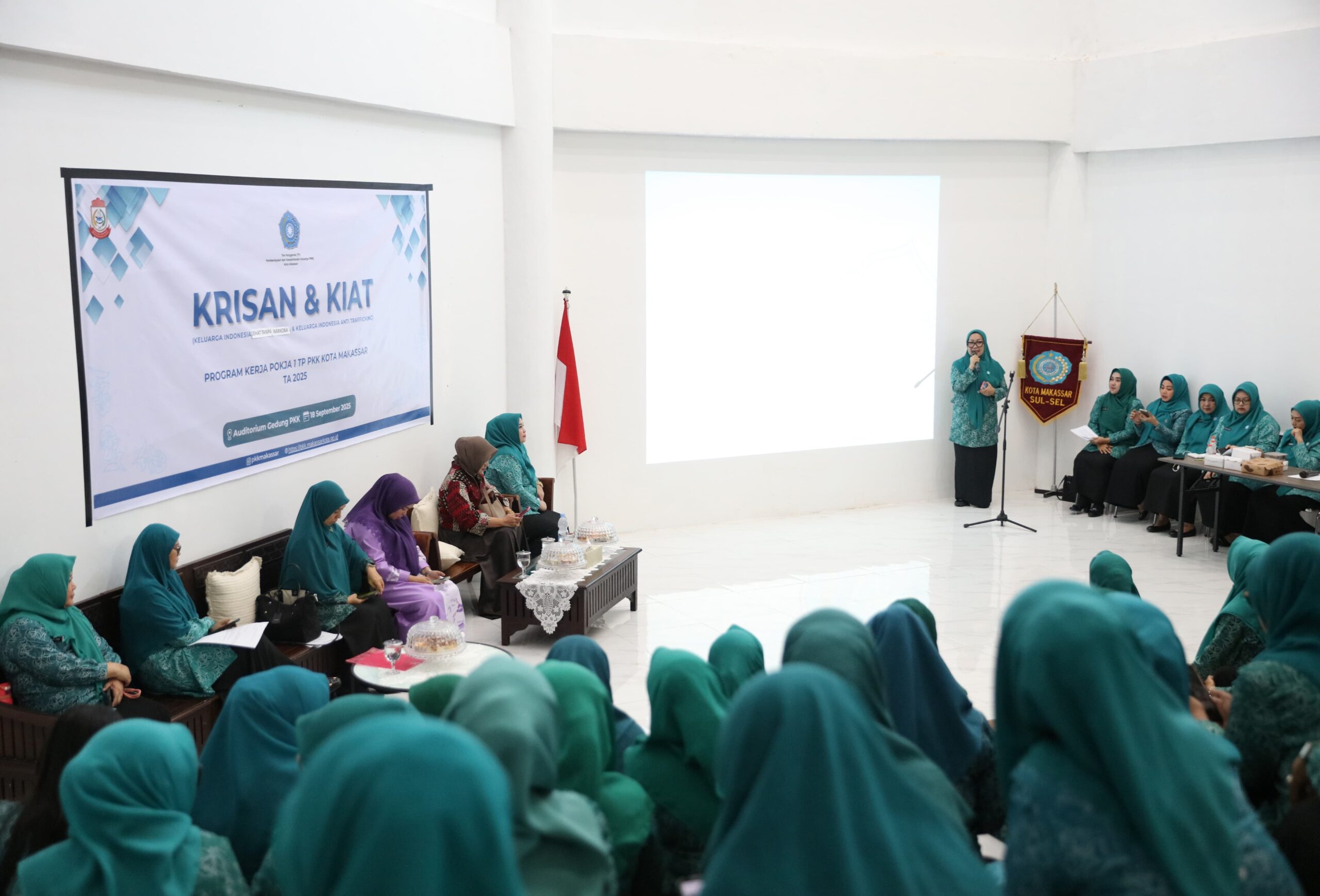 MAKASSAR – TP PKK Kota Makassar melalui Pokja I menggelar sosialisasi Keluarga Indonesia Sehat Tanpa Narkoba (Krisan) dan Keluarga Indonesia Anti Trafficking (Kiat) di Auditorium pada Kamis (19/9/2025).