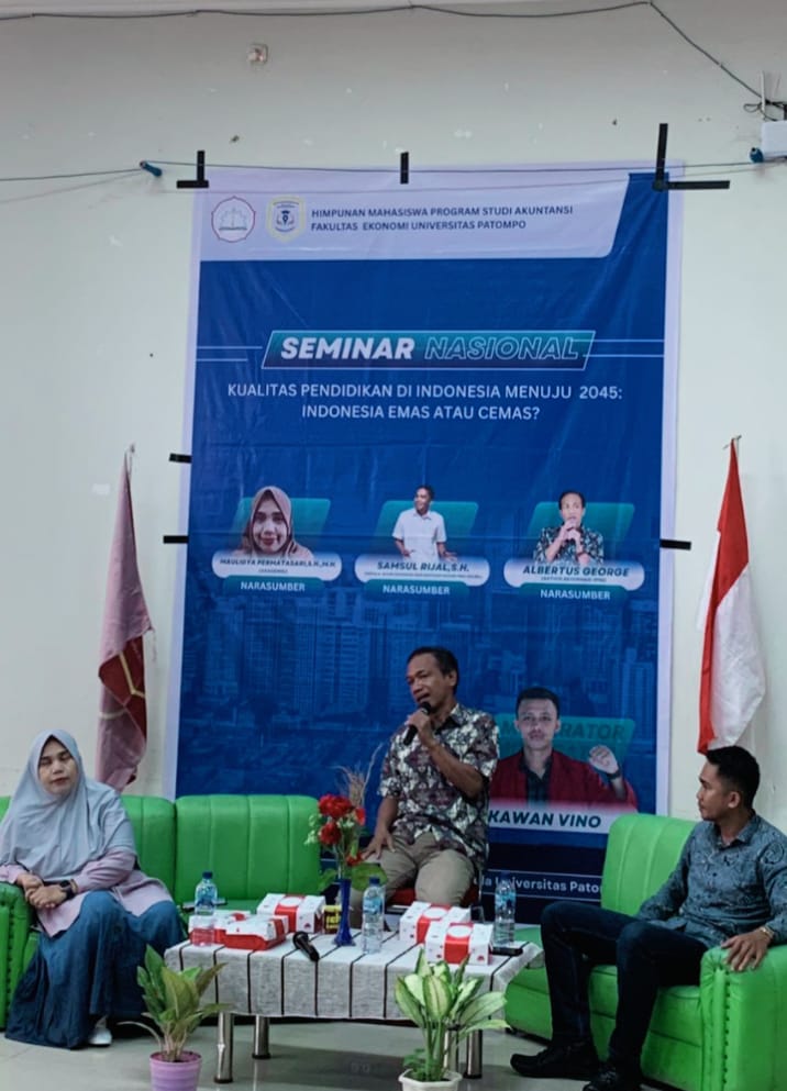 MAKASSAR – Aktivis reformasi, Albertus George, SH, menjadi pembicara pada seminar nasional di Universitas Patompo, Makassar, Sabtu 14 Juni 2025. Dia getol menyoroti soal sarana dan prasarana pendidikan di Indonesia. Masih kurang.