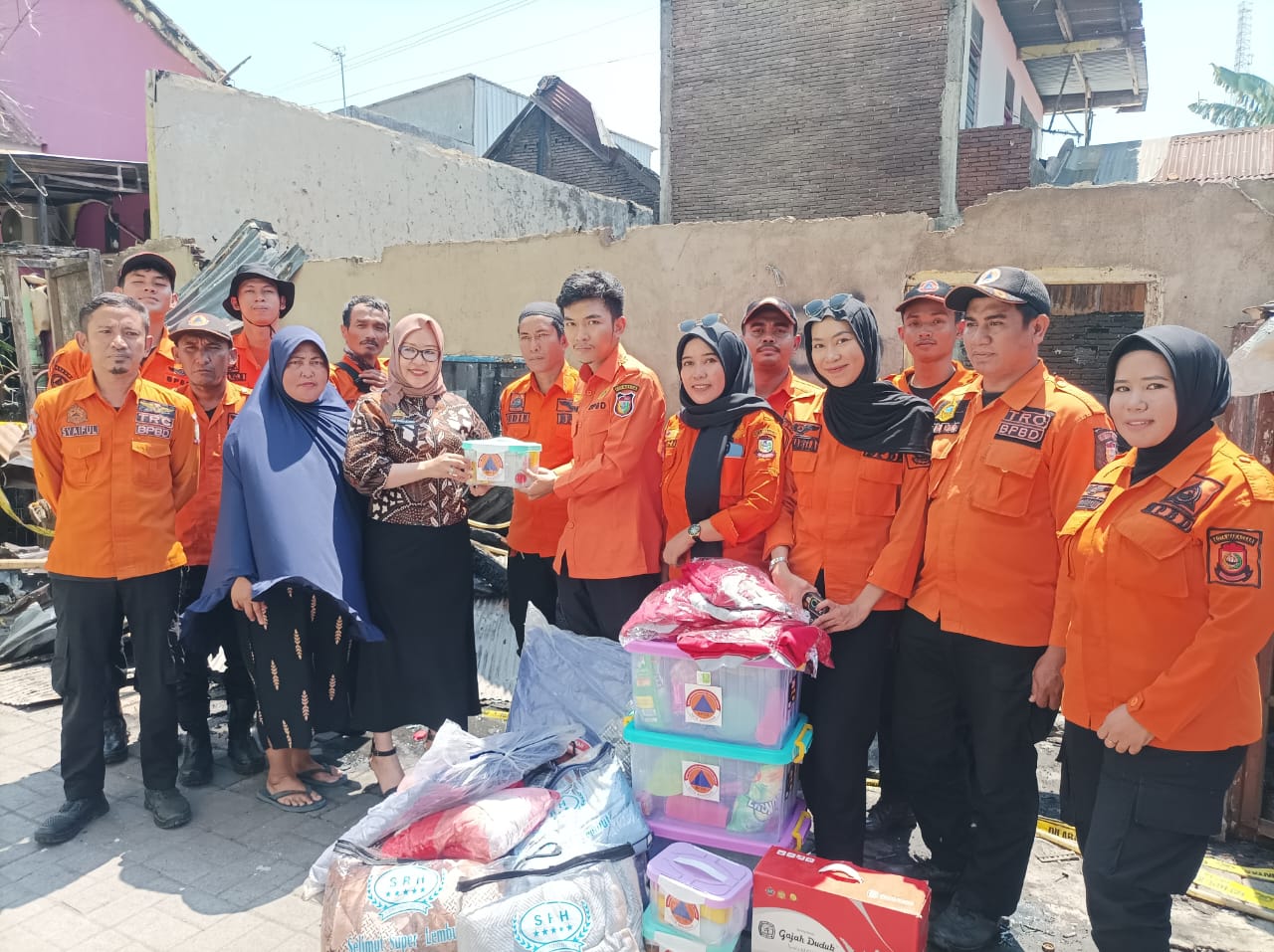 Siang tadi, Staf Bidang Kedaruratan dan Logistik Badan Penanggulangan Bencana Daerah (BPBD) Makassar bergerak ke lokasi kebakaran, menyalurkan bantuan.