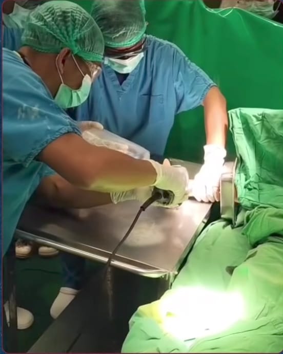 Di RS Labuang Baji, tim dokter bedah bersama empat personel rescue peleton I Dinas Damkarmat Makassar terus berupaya melepas tangan korban dari mesin penggiling itu.