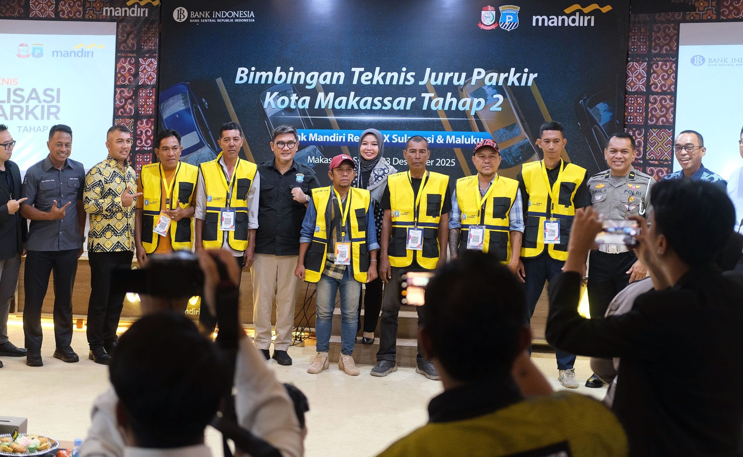 MAKASSAR — Perusahaan Umum Daerah (Perumda) Parkir Makassar bekerjasama dengan Bank Mandiri kembali menggelar Bimbingan Teknis (Bimtek) Juru Parkir Tahap II, yang berlangsung di Bank Mandiri Region X Sulawesi & Maluku, Selasa, 23 Desember 2025.